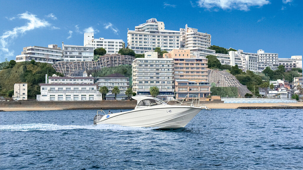 中部最大級のラグナマリーナを出航し、西浦温泉の街並みを海から眺められる教習コース。